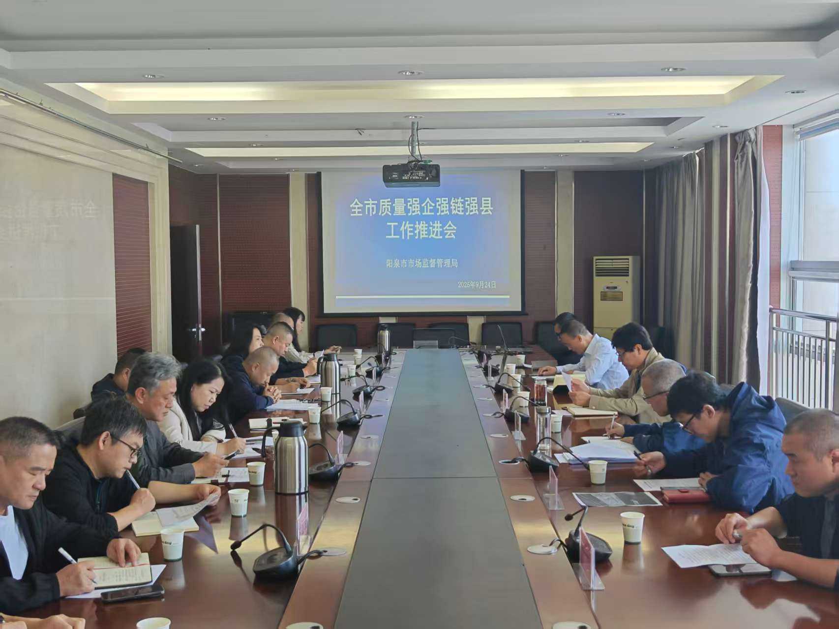 为深入推进全省质量“三强”即“强企强链强县”工作部署,扎实开展“质量月”系列宣传活动。9月24日上午,市市场监管局组织召开全市质量“强企强链强县”工作推进会。会议聚焦企业质量主体能力提升、产业链协同创新及县域质量发展三大核心任务,通过典型企业经验分享、县域实践交流及政策部署,推动全市质量工作迈向新台阶。市局二级调研员胡彦明出席会议并作重要讲话,各县(区)市场监管局、重点产业链链主企业、提质强企“头雁行动”培育企业代表共20余人参会。