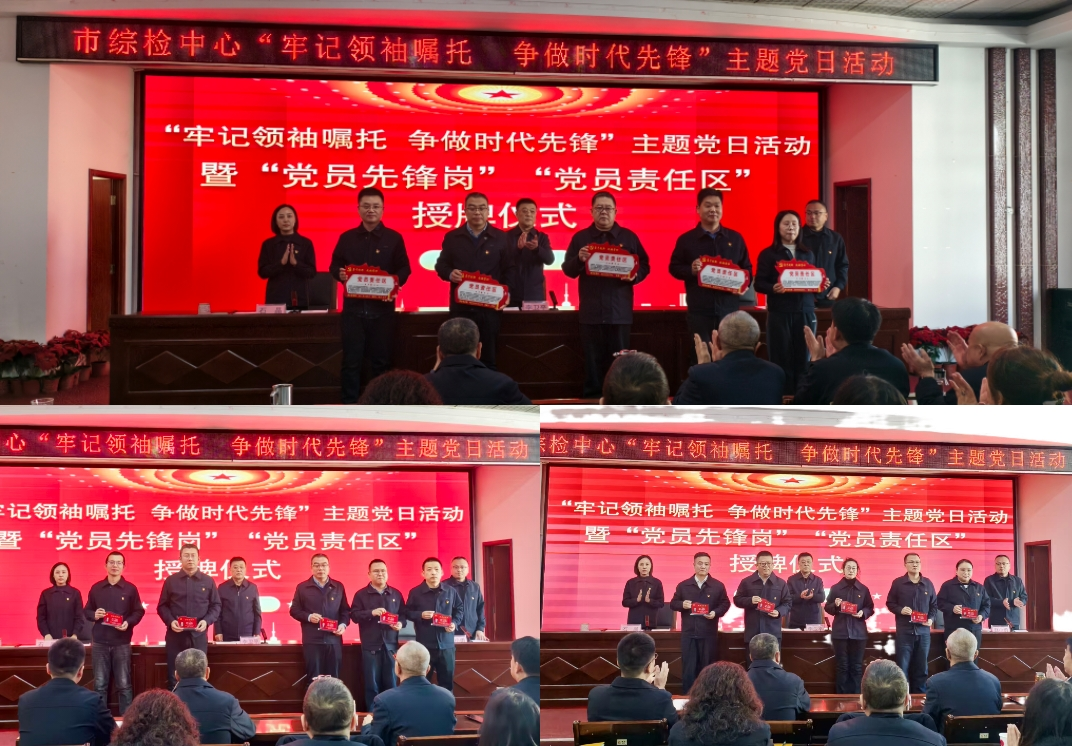 为贯彻党的二十届四中全会精神,持续深入学习贯彻习近平总书记考察山西重要讲话重要指示精神,巩固深入贯彻中央八项规定精神学习教育成果,充分发挥基层党组织战斗堡垒和党员先锋模范作用,激励广大党员干部“亮身份、践承诺、作表率”。11月27日,市综检中心党总支开展“牢记领袖嘱托 争做时代先锋”主题党日活动暨“党员先锋岗”和“党员责任区”授牌仪式。全体党员、发展对象和入党积极分子参加。