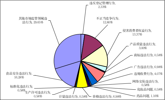 2026年2月份全市受理举报172件,违法行为集中在其他市场监管领域违法行为、食品安全违法行为、侵害消费者权益行为。如下图: