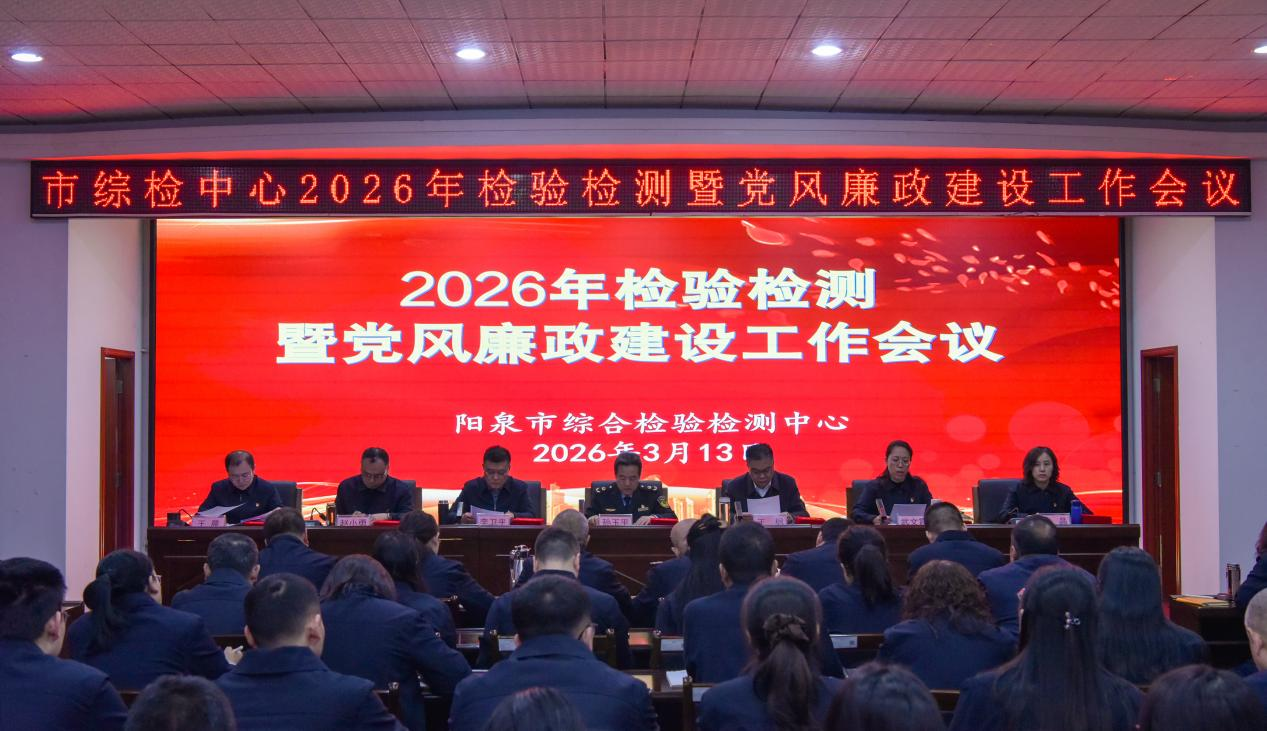 3月13日,阳泉市综合检验检测中心召开2026年检验检测暨党风廉政建设工作会,会议由中心副主任武文霞主持,市局党组成员、副局长孙玉平和驻局纪检监察组组长王枫出席会议并讲话,中心全体干部职工参加。